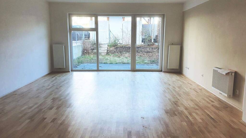 Im 1. Geschoß befinden sich ein Vorzimmer, ein separates WC, ein Abstellraum, vielseitig nutzbarer Hausarbeitsraum und eine geräumige Wohn-/Essküche, von der man direkt auf die herrliche Terrasse und Eigengarten mit ca. 30m² gelangen kann.