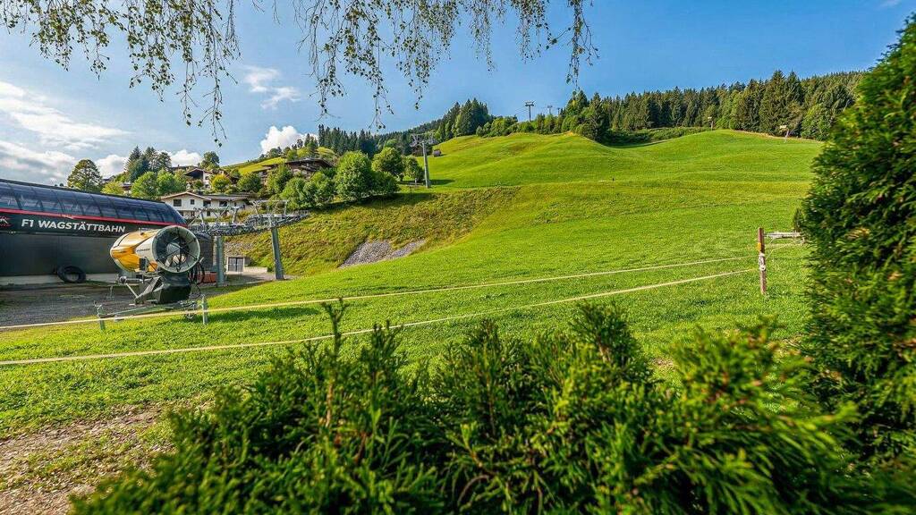 Die sonnige Hanglage bietet einen freien Panoramablick auf die umliegende Bergwelt und verbindet alpines Naturerlebnis mit direktem Zugang zur Piste