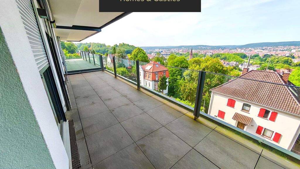 Ein besonderes Highlight ist die fast 50 m² große, L- Terrasse, die sich entlang der gesamten Wohnfläche erstreckt. Von hier genießen Sie spektakuläre Sonnenuntergänge, den Blick auf das Saarbrücker Stadtleben und eine unvergleichliche Atmosphäre, die jeden Tag besonders macht.