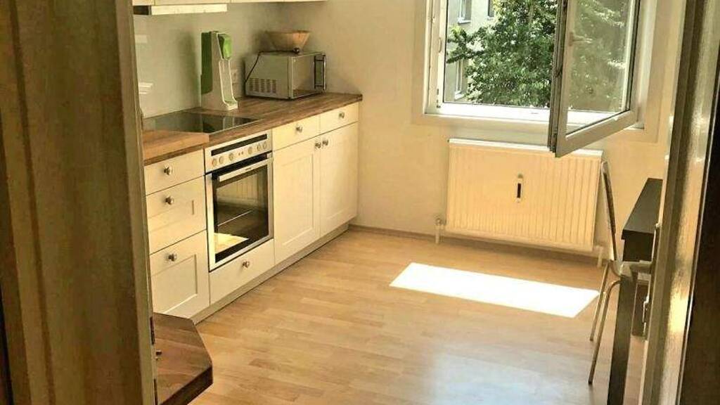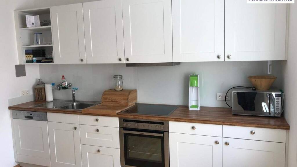 Mit einer großzügigen Wohnfläche von 80 m² überzeugt die Immobilie durch eine durchdachte, zentral begehbare Raumaufteilung. Vom langen Gang gelangt man in alle Räume, darunter eine stilvolle, maßgefertigte Tischlerküche mit hochwertiger Glasrückwand in Wollholz-Weiß. Der kleine Vorraum bietet genügend Platz für Stauraum, während Außenjalousien für optimalen Licht- und Wärmeschutz sorgen.