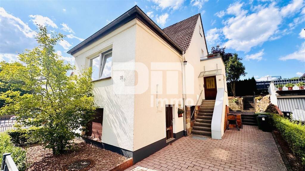 Bereits bei erster Außenbetrachtung fällt der gepflegte Charakter der Doppelhaushälfte mit hell gestrichener Fassade, angelegtem Vorgarten und gepflasterter Auffahrt/Zuwegen wohlwollend ins Auge.