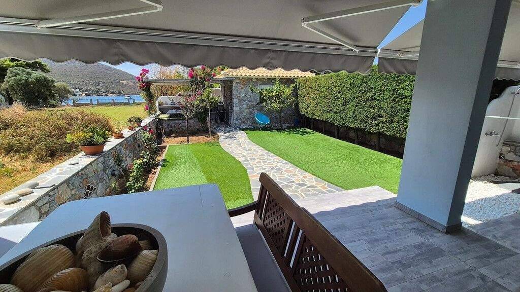 50 Meter vom Meer entfernt, am malerischen Strand von Panagia in Almyropotamos auf Evia, steht dieses außergewöhnliche Einfamilienhaus mit 100 qm Wohnfläche zum Verkauf. Es wurde 2016 erbaut, entspricht der Energieklasse A+ und befindet sich auf einem