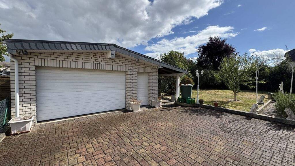 Im hinteren Teil des Grundstückes ist eine großzügig geschnittenen Garage.