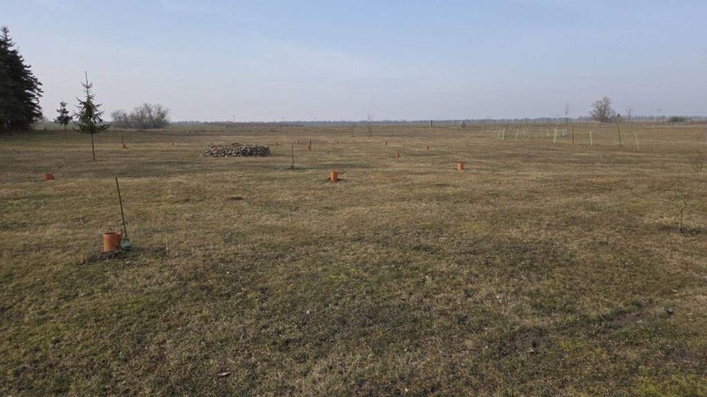 Der Außenbereich ist riesig. Neben den bereits erwähnten großen Ställen plus "Zwischenbau" im Winkel der Ställe, gibt es eine große Wiese mit ca. 5000 m². Hier wurden bereits Bäume angepflanzt, die zum Teil wieder von den Rehen angeknabbert wurden. Auch Tiere lassen sich gut halten, Hühner, Schafe oder ein Pferd oder ......