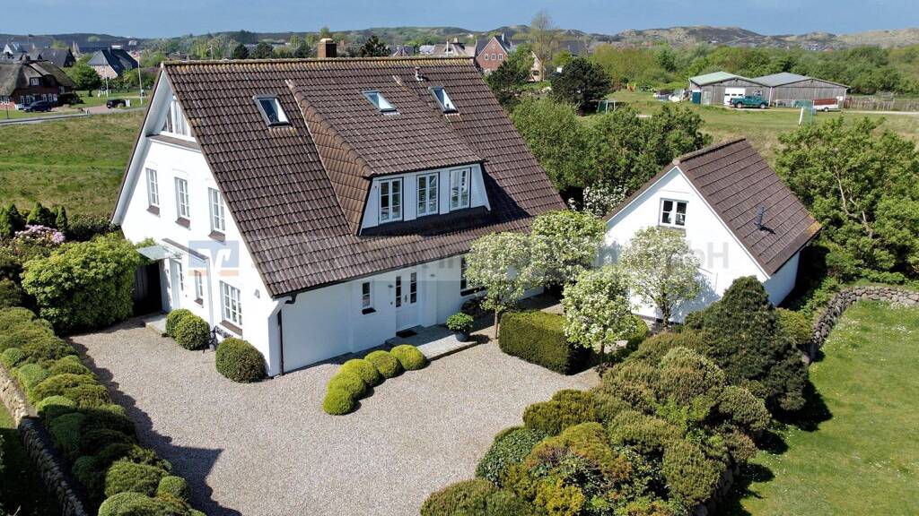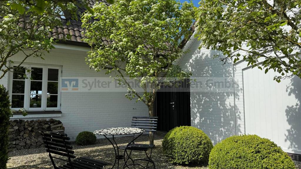 Dieses charmante und stilvolle Einfamilienhaus mit zusätzlicher Ferienwohnung befindet sich in der beliebten Gegend "Am Königshafen" in List auf Sylt. Das großzügige, 820 m² große Grundstück bietet viel Platz und vor allem Privatsphäre. Das gesamte Anwesen wurde im Jahr 2007/8 umfassend saniert und erstrahlt in neuem Glanz. Die Außenfassade wurde vor kurzem erneut weiß geschlemmt, was dem Haus ein zeitlos elegantes Erscheinungsbild verleiht. Der liebevoll angelegte und gepflegte Garten mit großer Holzterrasse lädt zum Verweilen und Entspannen ein.
