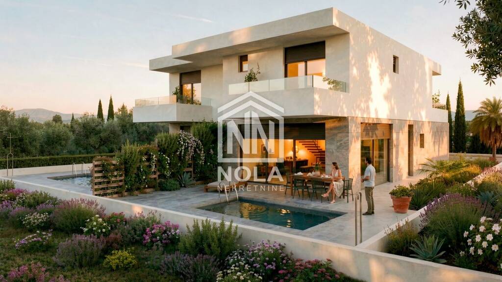 In einer der begehrtesten Lagen von Vodice, in ruhiger und exklusiver Wohngegend, befindet sich dieses moderne Haus als Teil eines Doppelhauses - die perfekte Kombination aus zeitgenössischer Architektur, höchster Qualität und mediterranem Lebensstil.