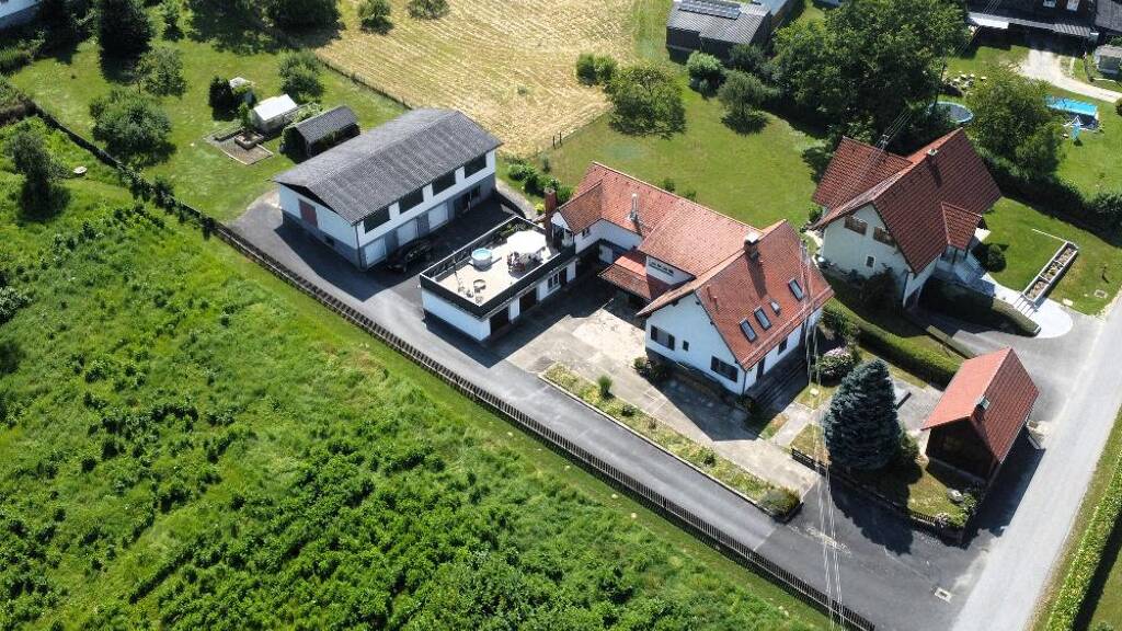 Dieses großzügige Mehrfamilienhaus mit zwei separaten Wohneinheiten überzeugt durch seine Lage im Herzen des steirischen Thermen- und Vulkanlandes - nur wenige Minuten von Fürstenfeld entfernt. Hier verbinden sich Lebensqualität, Natur und Freizeitmöglichkeiten auf einzigartige Weise. Das Objekt im Überblick: Wohnfläche: ca. 258 m² Grundstück: ca. 2.655 m² (Widmung: Bauland Dorfgebiet 0,2-0,6) 2 Wohneinheiten mit getrennten Eingängen 8 Zimmer, 2 Küchen, 2 Bäder, 2 WCs Teilweise saniert (Obergeschoss 2009 umfassend renoviert) Großzügige Terrasse (ca. 80?m²) mit Naturblick im Obergeschoss sowie eine weitere Terrasse im Erdgeschoss beim zweiten Wohnbereich. Garten, Pool-Bereich mit Poolhaus (Pool mit eigenem Brunnenwasser, wartet auf eine Wiederbelebung) Keller, 5 Garagenplätze & weitere Stellplätze Öl-Zentralheizung + Stückholzheizung Highlights: Zwei separate Wohneinheiten - ideal für mehrere Generationen, Vermietung oder auch eine Kombination aus Wohnen und Arbeiten. Großzügige Nutzflächen inklusive einer Lagerhalle mit ca. 154 m² sowie zusätzlichen Garagen (ca. 96 m²). Perfekt geeignet für Hobbys oder Sammler - etwa als Oldtimer-Garage, Werkstatt oder Lagerfläche. Wohnkomfort im Obergeschoss mit moderner Küche, stilvollem Wohnbereich samt Kachelofen und einer weitläufigen Terrasse mit traumhaftem Ausblick. Flexibilität im Erdgeschoss: Ehemalige Büroflächen mit Küche und Sanitäranlagen bieten Potenzial für Wohnen oder gewerbliche Nutzung. Pool mit eigenem Brunnenwasser - ideal, um sich mit etwas Modernisierung ein echtes Wellnessparadies im eigenen Garten zu schaffen.