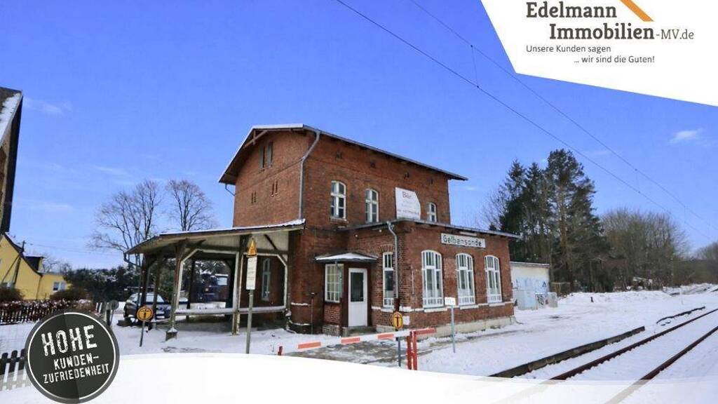 Das historische Bahnhofsgebäude in Gelbensande wurde um ca. 1890 in massiver Bauweise errichtet und diente ursprünglich sowohl als Bahnhofsgebäude als auch als Wohnhaus für Bahnbeamte.