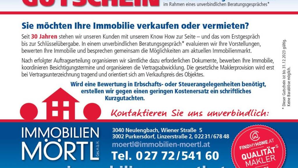 Finden Sie uns unter www.immobilien-moertl.at oder https://www.facebook.com/ImmobilienMoertl/IMMOBILIEN MÖRTL - Wir verkaufen Ihre Immobilie in Wien und Niederösterreich!https://www.immobilien-moertl.at/1182743/Immobilienverkauf