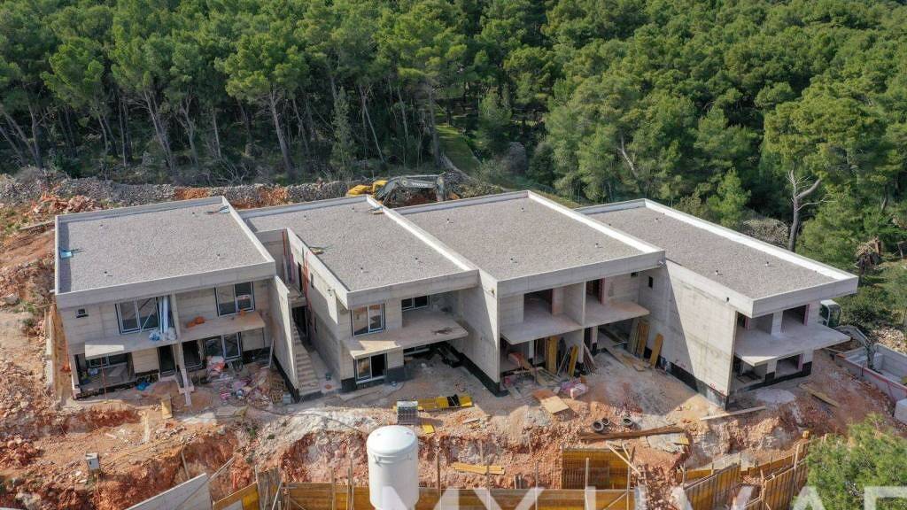 Entdecken Sie diese exquisite, moderne zweistöckige Wohnung in der begehrten Lage Jelsa, Burkovo, mit atemberaubendem Meerblick. Das Anwesen verfügt über eine Gesamtfläche von 289,3 m, davon 123,1 m Wohnfläche, 69,9 m Terrassen und Balkone, einen 83,8 m großen Garten und einen 12,5 m großen Parkplatz. Die tatsächliche Nutzfläche beträgt großzügige 152 m.