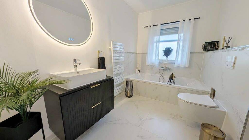 - Fußbodenheizung in der Küche und in beiden Bädern