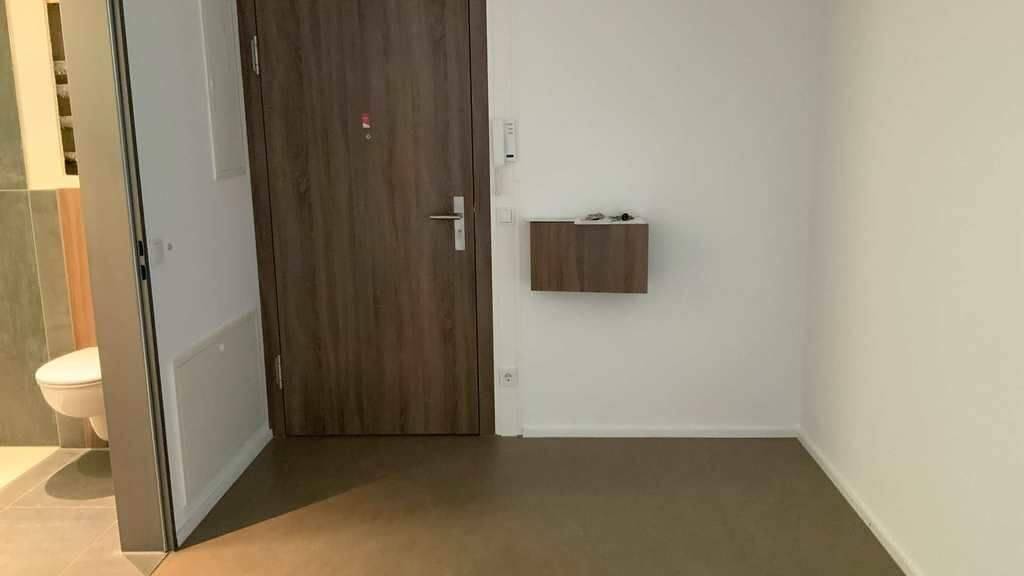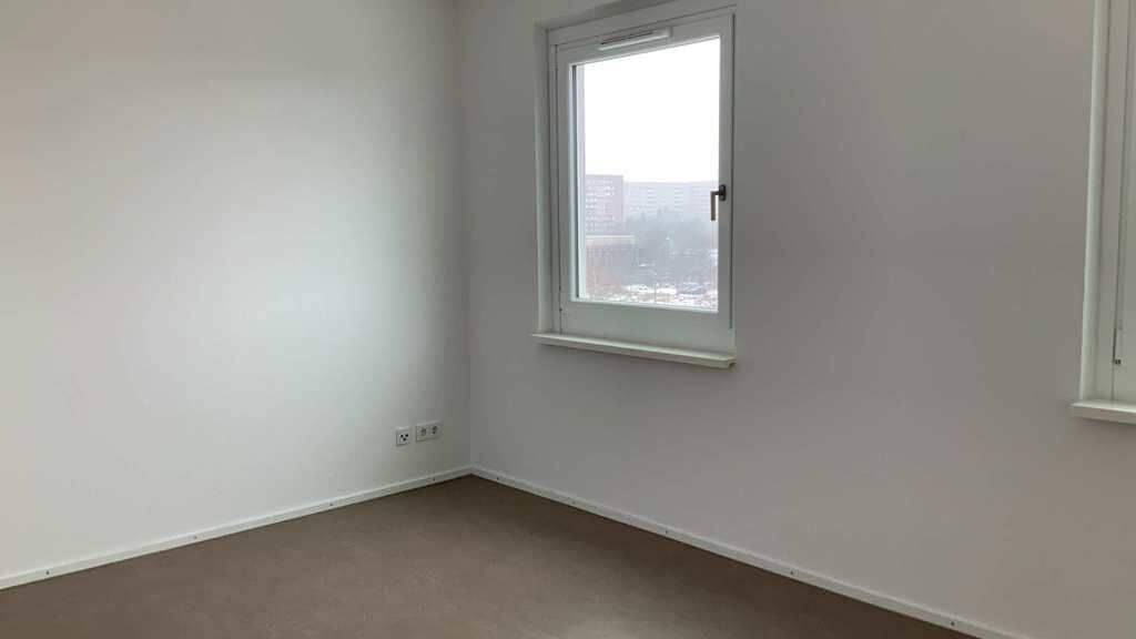 Die Wohnung verfügt über eine Fußbodenheizung. Die Innentüren sind weiß. Der Fußboden hat einen Linoleumboden. Die Wände und Decken haben weiße Raufasertapeten.