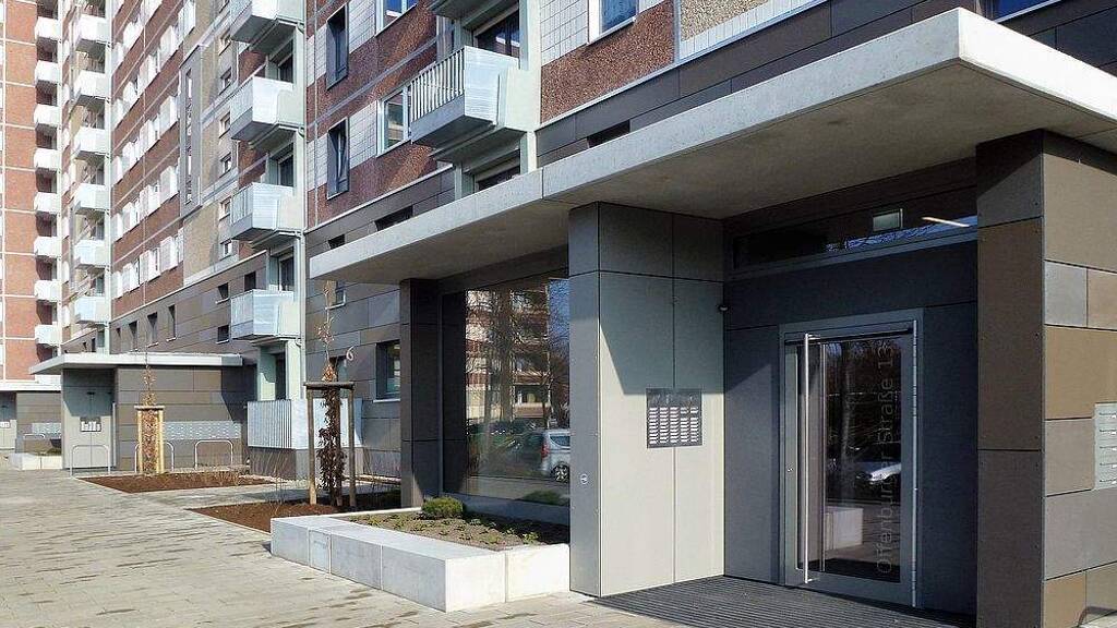 Die 11-geschossige Wohnanlage wurde 1985 erbaut und 2017 generalsaniert. Die hochwertig sanierten Wohnungen verfügen über eine Vielfalt von Grundrissen. Von einer kleinen 1-Raum-Wohnung bis hin zu einer geräumigen 3-Raum-Wohnung ist in diesem Objekt alles vorhanden. Der ebenerdige Aufzug fährt bis in das 10. Wohngeschoss. Die Wohnungen verfügen teilweise über einen Balkon oder einer Loggia. Die barrierearme Ausstattung der Wohnung spricht besonders Senioren an. Im Erdgeschoss der Offenburger Straße 9-15 befinden sich die Begnungsstätte und Sozialstation der 'AWO'.
