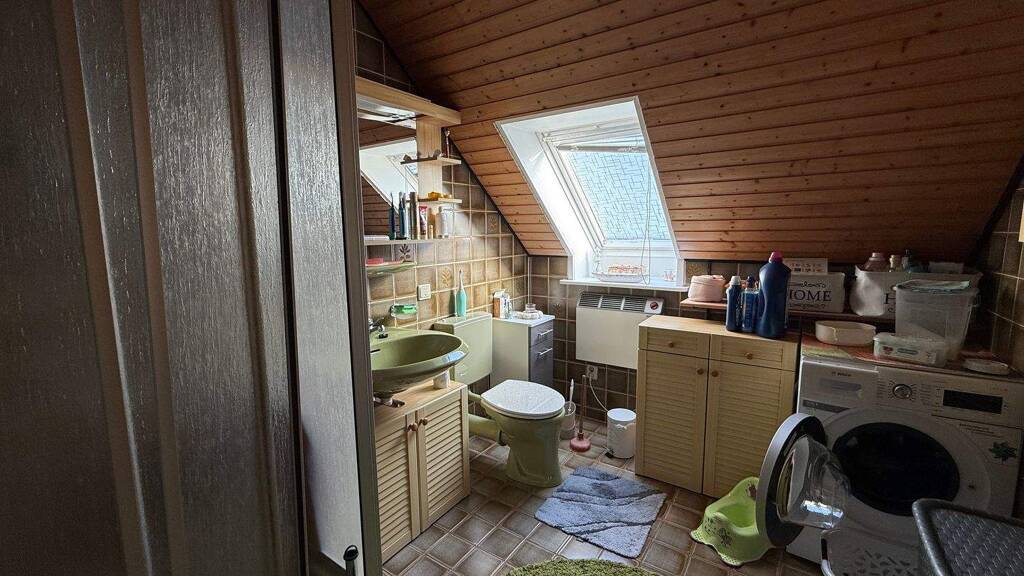 Im Jahr 2021 wurden im Erdgeschoss und Obergeschoss ein moderner Laminatboden sowie Teppichboden im Schlafbereich verlegt. Lediglich im Flur (EG) ist noch der Fliesenboden aus dem Baujahr vorhanden. Das Haus wird durch Elektroflachheizkörper aus dem Jahr 2021 sowie mit einem Kachelkamin beheizt. Im Jahr 2022 wurde eine Photovoltaikanlage (16,3 Kwp) mit Speicher (19 kwp) installiert. In diesem Zuge wurde ein neuer Stromzählerschrank installiert und alle Absicherungen im Haus auf den neuesten Stand gebracht. Die Warmwasseraufbereitung erfolgt mittels Durchlauferhitzer. Die Zuleitung wurde in 2022 erneuert. Die Bäder sowie Fenster und Haustür sind aus dem Baujahr und bedürfen einer Modernisierung.