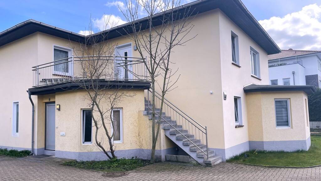 Über die moderne Außentreppe gelangt man auf die vorgelagerte Terrasse und erreicht die Wohnung im Obergeschoss. Hier haben wir ebenfalls eine 3-Zimmer-Wohnung mit Wohnzimmer, 2 Schlafzimmern, Küche, Abstellraum und Bad. Ein Balkon, der vom Wohnzimmer und einem der Schlafzimmer zugänglich ist, rundet die gemütliche Wohnung ab.
