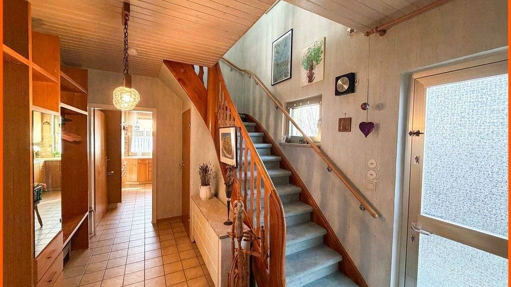 Das Haus bietet der größeren Familie ausreichend Platz. Im ersten Obergeschoss befinden sich 4 Schlafzimmer, teilweise mit Balkon. Im Erdgeschoss erwarten Sie ein großes Wohn-Esszimmer mit Ausgang auf die große Terrasse mit Ausblick. Auf dieser Ebene befinden sich noch die Diele, das Bad und die Küche mit direkter Verbindung zum Essplatz.
