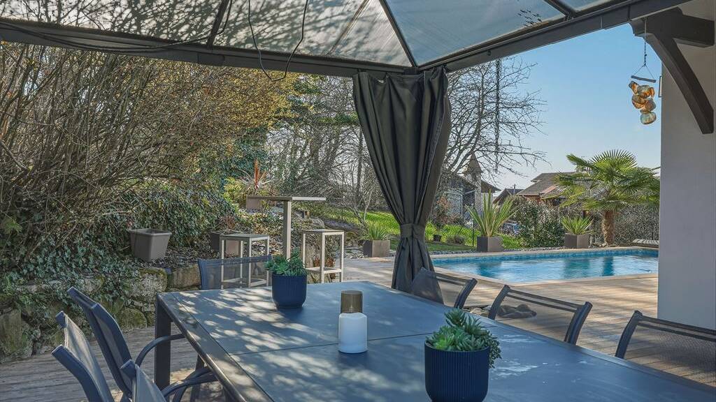 Located in Lugrin, this exclusive property is captivating thanks to its peaceful, verdant setting, lake views, and direct access to the adjacent forest.