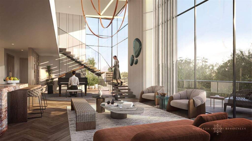 Hier wird Außenraum zum Luxusgut: weite Terrassen schweben über einem Meer aus Baumkronen, Spazierwege durchziehen eine naturbelassene Parklandschaft, in der Stille und Privatsphäre selbstverständlich sind.