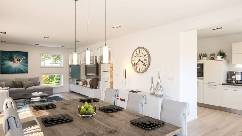 Das dargestellte Haus ist ein Vorschlag - bei RENSCH-HAUS planen wir grundsätzlich individuell, frei und flexibel, ganz nach Ihren Wünschen - wie beim Architekten. Die finale Ausführung erfolgt individuell und kann bei Bedarf noch an die Gegebenheiten des Grundstücks angepasst werden.