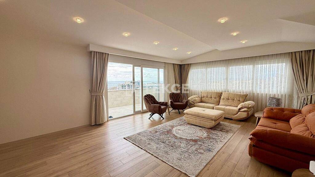 Die 4-Zimmer-Penthouse-Wohnung ist mit hochwertigen Ausstattungsmerkmalen wie einer Eingangstür aus Stahl, doppelt verglasten PVC-Fenstern, einem komplett gefliesten Badezimmer und einer Küche mit Einbauschränken, Keramikböden, LED-Beleuchtung, Aluminium-Balkongeländern, einer Gegensprechanlage, WLAN und einem zentralen Satellitensystem ausgestattet. Die mit modernen Materialien gestaltete Wohnung ist komplett mit hochwertigen Bosch-Geräten ausgestattet.
