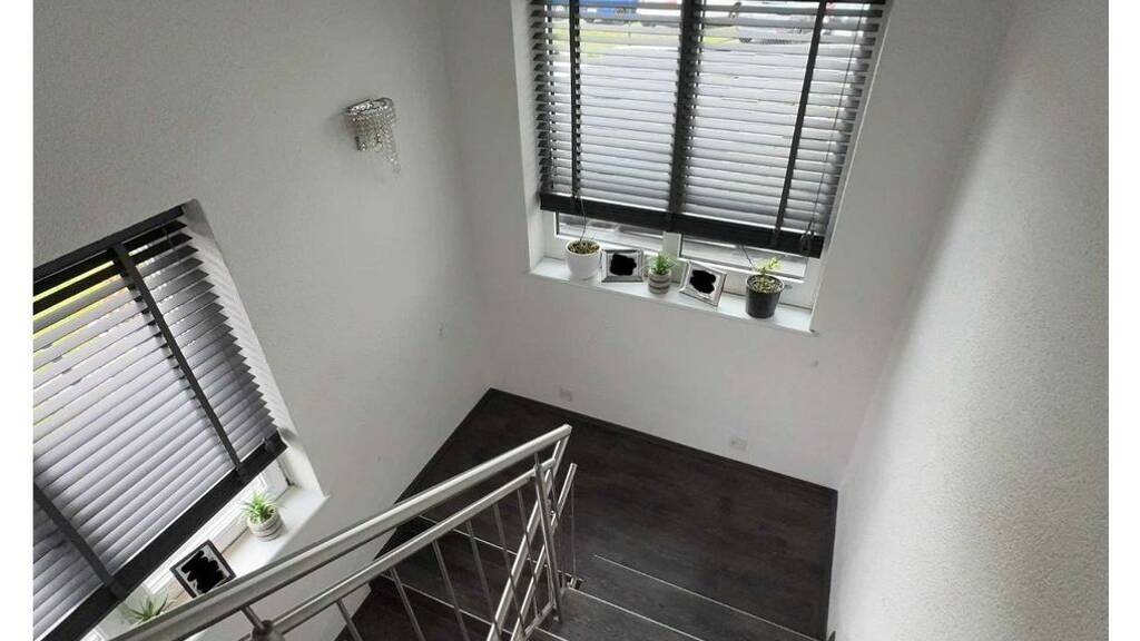 Im Erdgeschoss empfängt Sie der helle, offene Wohnbereich, der durch große Fensterflächen viel Tageslicht erhält. Die angrenzende Küche bietet neben der modernen Einbauküche auch ausreichend Platz für einen Essbereich. Das Gäste-WC sowie ein zusätzlicher Raum, der sich ideal als Büro oder Gästezimmer eignet, runden das Erdgeschoss ab.