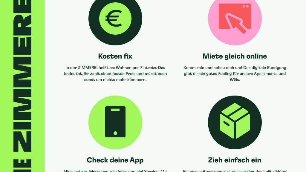 In der ZIMMEREI zahlst du eine All-inclusive-Miete, die sämtliche Kosten und Nebenkosten wie Wasser, Strom, Heizung und Internet abdeckt.