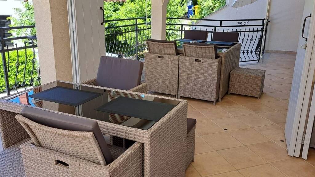 Zum Verkauf steht eine schöne Wohnung mit großer Terrasse, im hohen Erdgeschoss eines Wohngebäudes in Malinska auf der Insel Krk.
