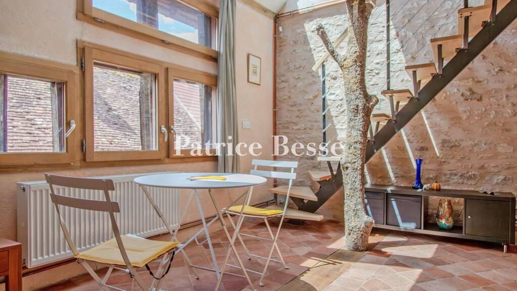 The regional capitals of Lyon and Dijon can be reached in less than 1 hour 30 minutes by the A6 motorway, while Geneva is 2 hours 15 minutes away. High speed TGV trains can be caught from two stations 30 minutes away, from where Paris can be reached in 1 hour 20 minutes. The house is located in a medieval village with widely renowned character and all the shops and amenities (supermarket, bakeries, cafés, schools, banks, etc.) can be reached on foot. The village is surrounded by vineyards, meadows and hills that are very conducive to rambles and hikes. It is not far from the Côte Chalonnaise winemaking area as well as the Macon vineyards and is situated on a circuit of Roman remains. Similarly, the village boasts a 12th-century church that is a listed historical monument and toward which the house enjoys a special view.