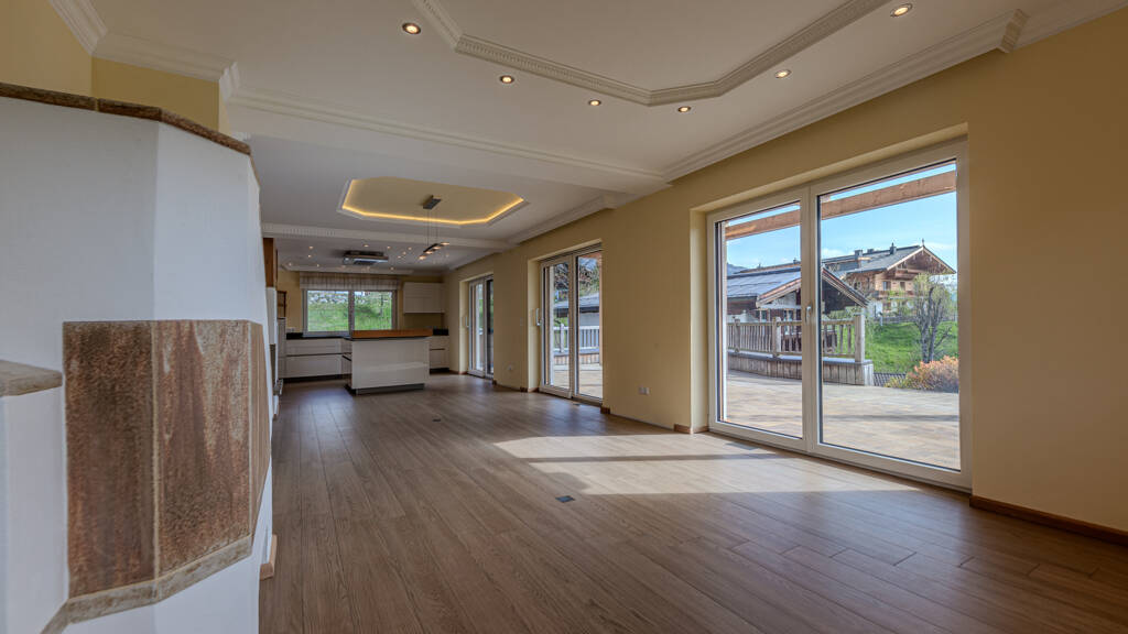 Going - Maisonette-Wohnung mit einer Wohn-/Nutzfläche von ca. 148 m², reine Wohnfläche ca. 131 m², Sonnenterrasse mit Panoramablick, Garten ca. 264 m², 2 Schlafzimmer, 2 Badezimmer, Infrarotkabine, Kachelofen, offener Kamin, moderne Einbauküche, Fußbodenheizung, Wohnraumbelüftung, 2 Garagenstellplätze, 2 Abstellräume