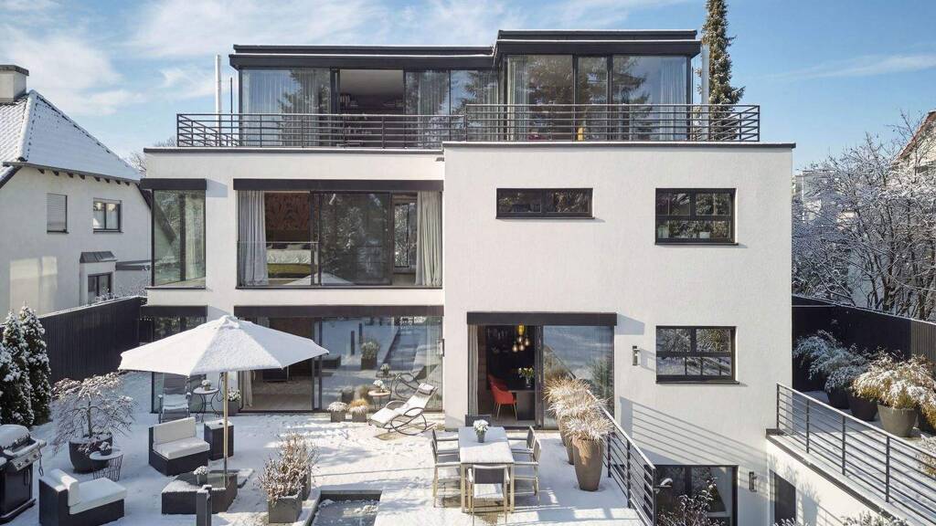Wie ein verstecktes Juwel befindet sich dieses Domizil als Eckhaus eines Dreispänners in weit zurückversetzter, perfekt abgeschirmter und absolut ruhiger Gartenlage. Das Objekt wurde 2021 im klassischen Bauhaus-Stil nach einem Entwurf des prämierten Architekten Dr. Norbert Weickenmeier errichtet. Der hohe äußere Anspruch setzt sich im Inneren des Hauses fort. Über alle vier Geschosse begeistert das Objekt durch seine exquisite Ausstattung. Das gesamte Interiordesign wurde von dem Münchner Innenarchitekten Andreas Koubek mit größtem Stilempfinden stimmig und detailreich geplant. Die Umsetzung erfolgte durch erstklassige Handwerksbetriebe auf höchstem Niveau.