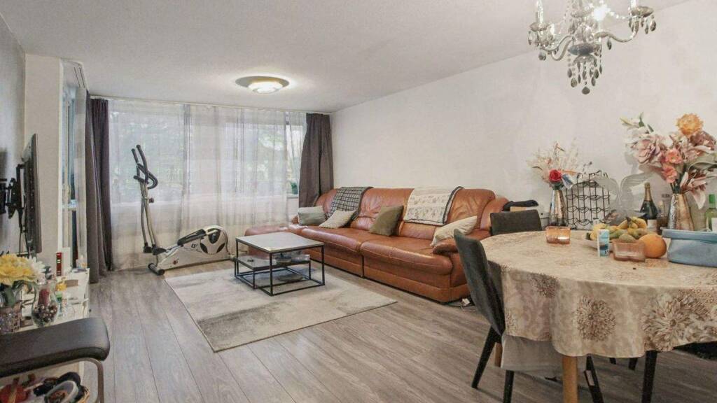 Die Wohnung liegt im 1. Obergeschoss eines Mehrparteienhauses aus dem Jahr 1978 und ist bequem über einen Personenaufzug erreichbar. Auf rund 81,8 m² Wohnfläche verteilen sich ein Wohn- und Essbereich mit Zugang zum Balkon, zwei Schlafzimmer, eine separate Küche sowie ein Badezimmer mit Badewanne. Ergänzt wird der Grundriss durch ein separates WC und einen praktischen Abstellraum.