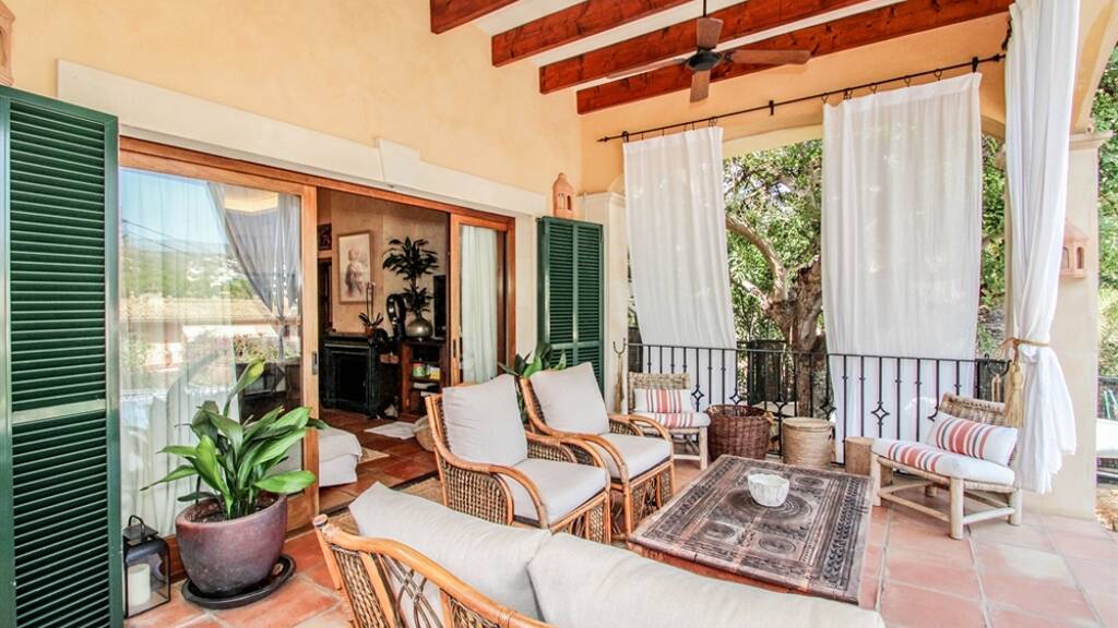 Zudem zwei Küchen, zwei Wohnzimmer, verschiedene Aufenthaltsräume und Kellerflächen. Die Terrassen bieten wie die oberen Zimmer fantastische Aussichten auf die Nachbarschaft, Natur und Mittelmeer. Traditionelle Elemente wie gotische Bögen aus Santanyi Stein, Marmorböden,