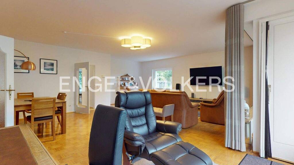 Diese sehr schön geschnittene 4-Zimmer-Wohnung bietet Ihnen viel Raum. Die Wohnung ist in einem sehr gepflegten Zustand und verfügt über schöne und praktische Details wie z.B. Parkettboden, Rollläden und Sonnenmarkisen. Die 8 Wohneinheiten verteilen sich auf insgesamt vier Etagen inkl. Tiefparterre. Das Haus und die Außenanlage sind stets gepflegt und in einwandfreiem Zustand. Außerdem erhielt das gesamte Haus vor einigen Jahren eine zusätzliche Außendämmung. Zusätzlich zu dem im Kaufpreis enthaltenen Tiefgaragenstellplatz kann der aktuell angemietete Carport-Stellplatz zu 25€/Monat mit übernommen werden. Zur Aufteilung: Von der Wohnungstür aus gelangen Sie in die Küche und das Gäste-WC, in eine kleine Abstellkammer und in das großzügige Wohn-/Esszimmer. Der hintere Bereich der Wohnung verfügt über einen an das Wohn-/Esszimmer angrenzenden separaten Flur, von dem aus man in den Schlaf-/Arbeitsbereich gelangt. Von hieraus gelangen Sie in das mit ebenerdiger Dusche ausgestattete Bad und die drei weiteren Wohnräume. Über die Küche und das Wohn-/Esszimmer gelangen sie direkt auf den Süd-West-Balkon. Die hinten gelegenen Räume haben alle einen separaten Zugang zum Nord-Ost-Balkon mit Blick ins Grün. Beide Balkone erstrecken sich über die gesamte Breite der Wohnung und bieten viel Platz. Im Kellergeschoss befindet sich eine Tiefgarage, ein Fahrradkeller, ein gemeinschaftlicher Waschkeller wie auch die einzelnen Kellerräume die zu den Wohneinheiten gehören. Im Jahr 2023 wurden auf der kompletten rechten Seite des Hauses die Wasserleitungen erneuert. In diesem Zuge wurde das Gäste-WC saniert. In 2024 wurden die Holzfenster neu gestrichen und es wurden die Wartungsfugen an den Fenstern fachmännisch erneuert. Schauen Sie selbst und vereinbaren Sie einen Besichtigungstermin.