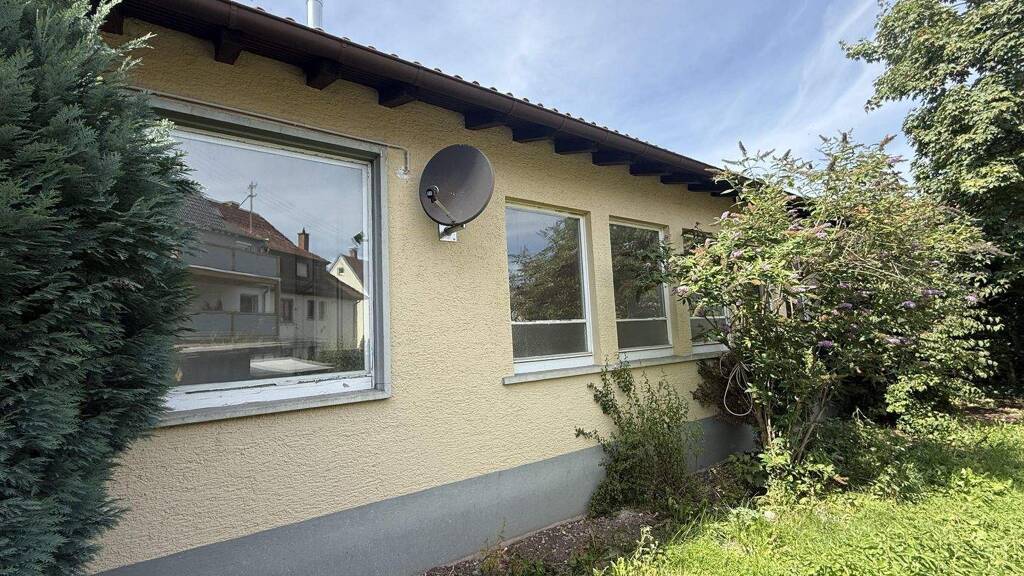 Die Grünfläche vor dem Haus ließe sich in eine Stellfläche für Fahrzeuge umwandeln.