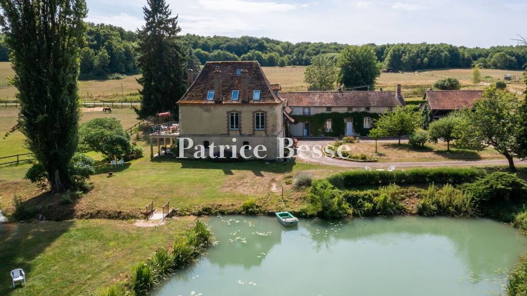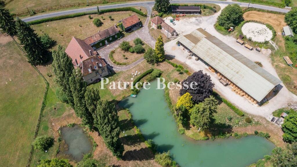 The house and outbuildings lie between meadows on one side of the lane and parkland. These buildings were once annexes of a chateau, a former horse-riding centre. But now they form a family home that lends itself to equestrian pursuits. The horse meadows and most of the equestrian facilities remain on the property, but the horse-riding hall at the far end of the grounds has been sold. You reach the buildings via a lane, then a double gate. A stream runs through the parkland and fills up the property's lake, which flows into the River Auxence, a small tributary of the River Yonne. A range of constructions with different purposes dot the land. First, there is the main house, between an orchard and a courtyard. It probably dates back to the 18th century and its foundations are even older, as suggested by a former chapel with rib vaults from the 16th century. The building, built in an L shape, includes two dwellings: the main one and a second one in a wing for friends and family that extends from the main house at a right angle. Beyond this second dwelling, there is a woodstore. Opposite the main house, there is an outbuilding used as an office. Five small looseboxes complete it. These buildings stand around a shady courtyard with a grassy centre with cherry trees. A lake lies beside the court. An agricultural storage building used for horse feed is flanked with 12 looseboxes and a saddle room. Two workshops lie beyond it. Another building with five looseboxes and a small storeroom complete the complex. The property also includes a round horse pen and a horse-riding area on the other side of the country lane.