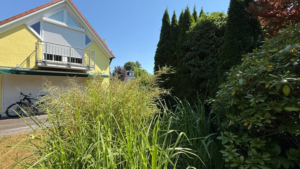 Das Untergeschoss bietet einen großzügigen Hobbyraum mit Fenster, der vielfältige Nutzungsmöglichkeiten eröffnet. Des Weiteren finden Sie dort einen praktischen Heizungs- und Wäscheraum, der auch als zusätzlicher Stauraum genutzt werden kann. Die gesamte Wohnfläche des Vorderhauses beträgt ca. 135 m² zzgl. Terrassen und großem Hobbyraum im taghellen Souterrain.