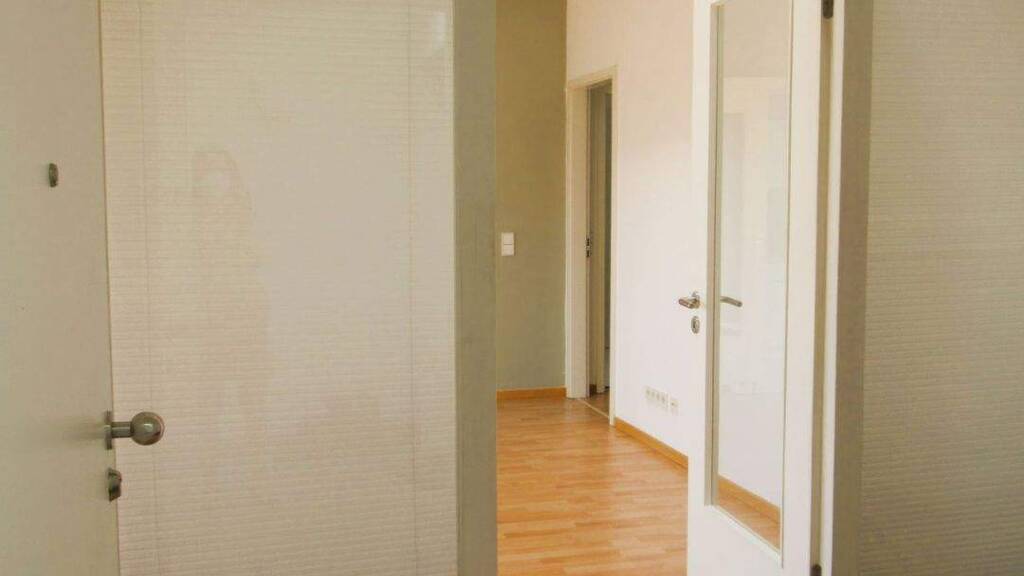Die Böden in den Wohn- und Schlafbereichen sind mit Laminat ausgelegt.