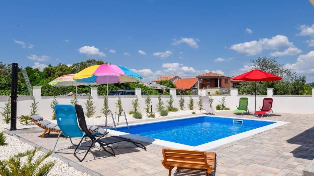 Ein neues Luxushaus mit Swimmingpool zum Verkauf in ruhiger Lage in Martinska in der Nähe von Sibenik. Das Haus ist von Natur aus ein Doppelhaus und erstreckt sich über zwei Etagen: Erdgeschoss und erster Stock, während sich im Innenhof ein wunderschön angelegter Garten und ein Swimmingpool befinden. Das Haus hat eine hervorragende Aufteilung und ist so gestaltet, dass der Hof jedes Hauses einen großen Garten und vollständige Intimität und Privatsphäre hat. Jedes Detail dieser Häuser ist sorgfältig entworfen und konstruiert, damit zukünftige Besitzer das ganze Jahr über Luxus und Komfort für den Urlaub oder das Leben haben.