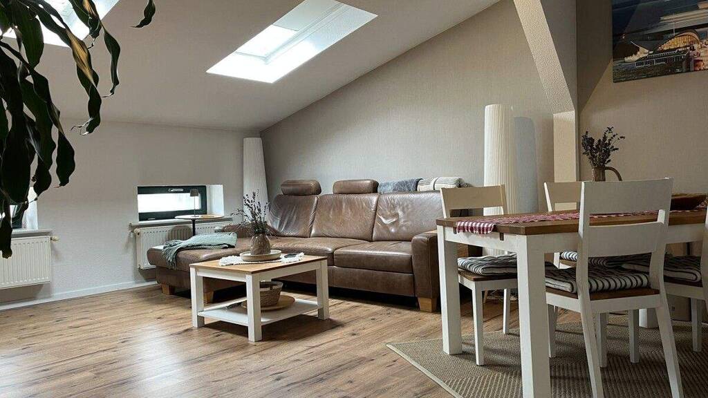 Highlights sind: .Lichtdurchfluteter Dachgeschossbereich mit großzügigen Fenstern, die tagsüber für eine helle, freundliche Atmosphäre sorgen. .Vier gut nutzbare Zimmer, flexibel nutzbar als Wohn- und Arbeitsbereiche, Schlafzimmer und Gästezimmer. .Separate Küche, die eigenständiges Kochen ermöglicht; ideal für Hobbyköche. .Tageslichtbad mit Fenster, Dusche und Badewanne; .Bodenbeläge in warm wirkender Holzoptik, die Harmonie und Behaglichkeit in alle Räume bringen. .Kleiner Balkon - ideal für Kaffee und frische Luft. .Kellerabteil für zusätzlichen Stauraum. .Gemeinschaftsgarten zur gemeinschaftlichen Nutzung - ideal für Entspannung, Hobbygärten oder Kinder. .Gasheizung, wirtschaftliche Wärme und bekanntes Heizsystem. .Die Wohnung wird frei übergeben, somit flexibel belegbar.