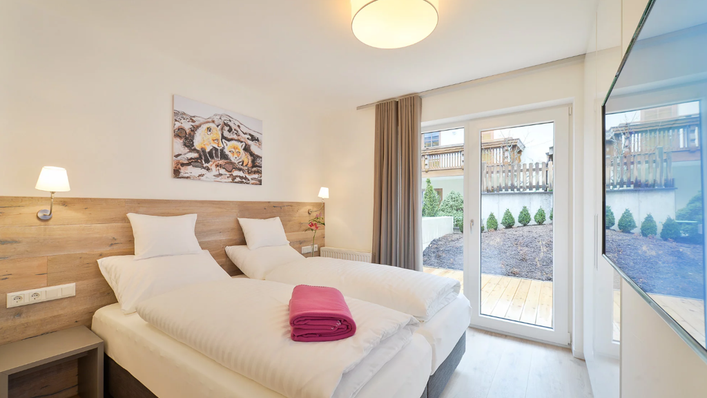 Diese stilvolle Suite begeistert mit ihrem hellen, modernen Alpen-Stil und einer angenehmen Süd-/West-Ausrichtung, die den Wohnraum mit viel natürlichem Licht durchflutet. Das Schlafzimmer ist mit einem komfortablen Doppelbett ausgestattet und bietet eine erholsame Rückzugsmöglichkeit.