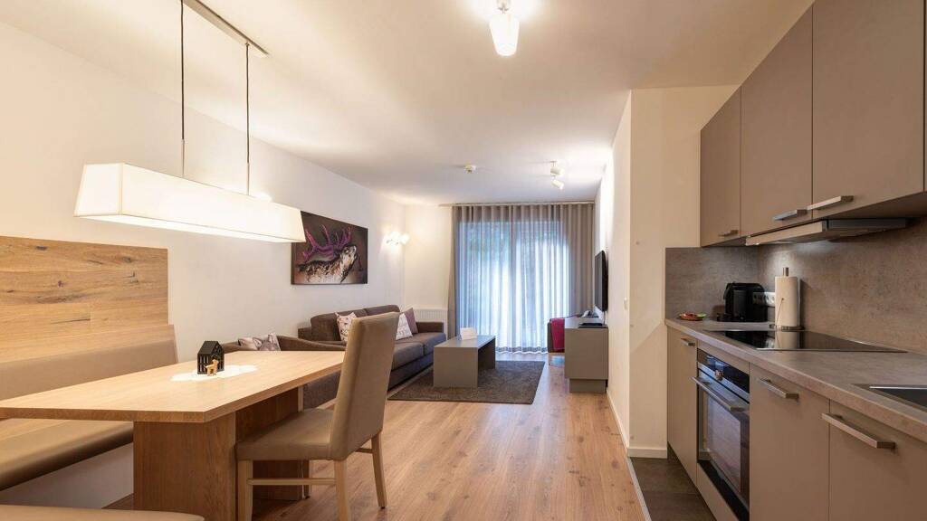 Fakten: - Suite für 2 Personen im hellen, modernen Alpen-Stil - Terrasse mit Süd-/West-Ausrichtung und kleinem Gartenanteil - Schlafzimmer mit Doppelbett - Wohn-/Essbereich mit Couch und Zugang zur Terrasse - Badezimmer mit Badewanne und Dusche - Gäste-WC - Eigene Sauna - Küchenzeile mit Backofen/Mikrowelle und Spülmaschine - 2-Fach Fensterverglasung - KFZ Stellplatz - Ruhige Lage