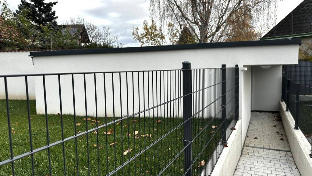Jede Einheit verfügt über fünf Zimmer, eine durchdachte Raumaufteilung und einen lichtdurchfluteten Wohnbereich. Die Beheizung erfolgt über eine Luftwärmepumpe mit Fußbodenheizung in allen Geschossen. Hochwertige Kunststoff-Alu-Fenster mit 3-fach Thermoverglasung und bauseitige Raffstores sorgen für optimalen Wohnkomfort. Zusätzlich gehören zu jeder Einheit ein Eigengarten und zwei asphaltierte PKW-Stellplätze. Die Massivbauweise mit Ziegelmauerwerk und hochwertiger Wärmedämmung gewährleistet eine hohe Energieeffizienz und nachhaltigen Wohnkomfort.