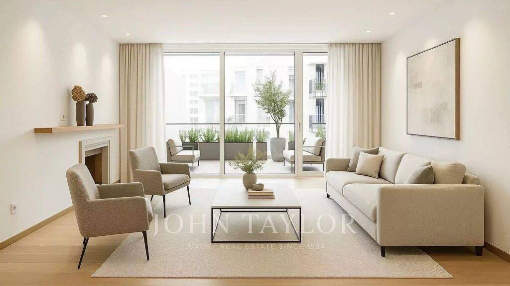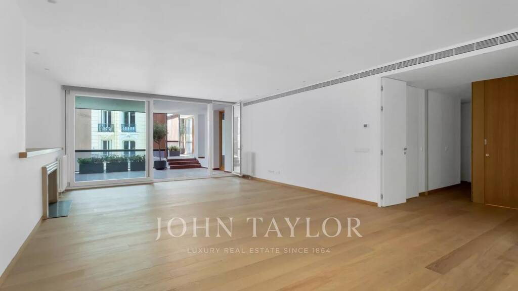 Die 307 m² große Wohnung verfügt über eine private Eingangshalle neben dem Hauptaufzug, eine zweite Eingangshalle im Inneren, die zunächst in den öffentlichen Bereich der Wohnung führt - Gästetoilette, Wohnzimmer, Esszimmer und offene Küche -, die alle auf Terrassen zur Straße Lagasca hinausgehen. Von der Eingangshalle aus hat man auch Zugang zu den Schlafzimmern mit großen Schränken und einem "Arbeitsplatz", der eine erste Master-Suite mit einem außergewöhnlichen Ankleidezimmer und Zugang zur Terrasse mit Blick auf Ortega y Gasset sowie ein komplettes Badezimmer umfasst, und eine zweite Master-Suite, ebenfalls mit Zugang zur Hauptterrasse, einem Ankleidezimmer und einem kompletten Badezimmer.