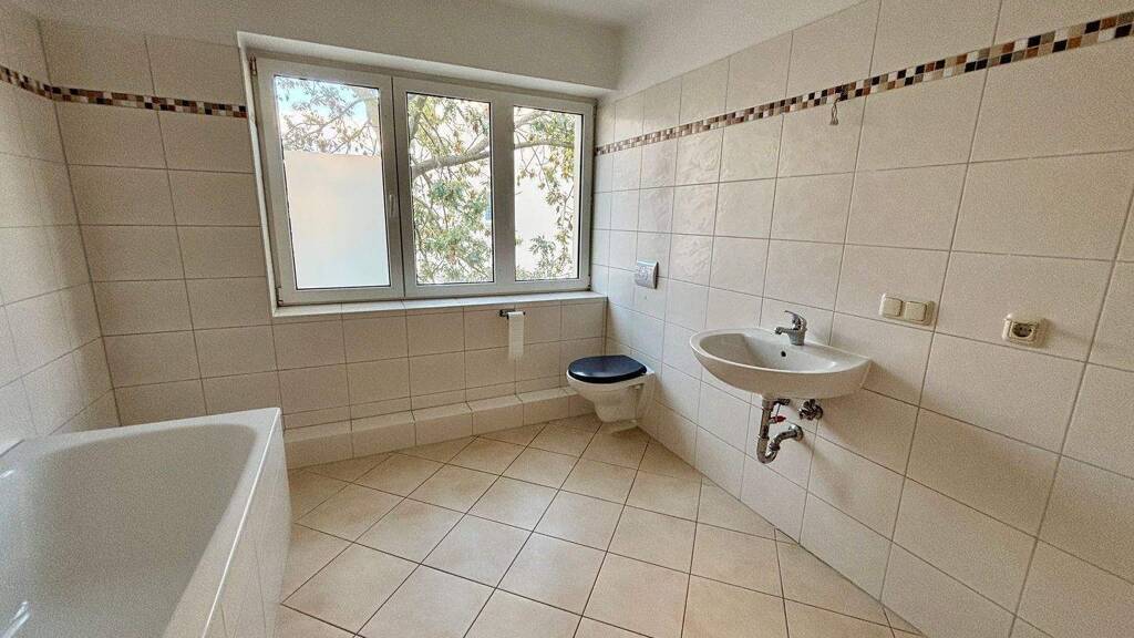 Das Tageslichtbad verfügt über eine Badewanne sowie einen Waschmaschinenanschluss und bietet somit optimale Voraussetzungen für entspannte Momente und funktionale Nutzung.