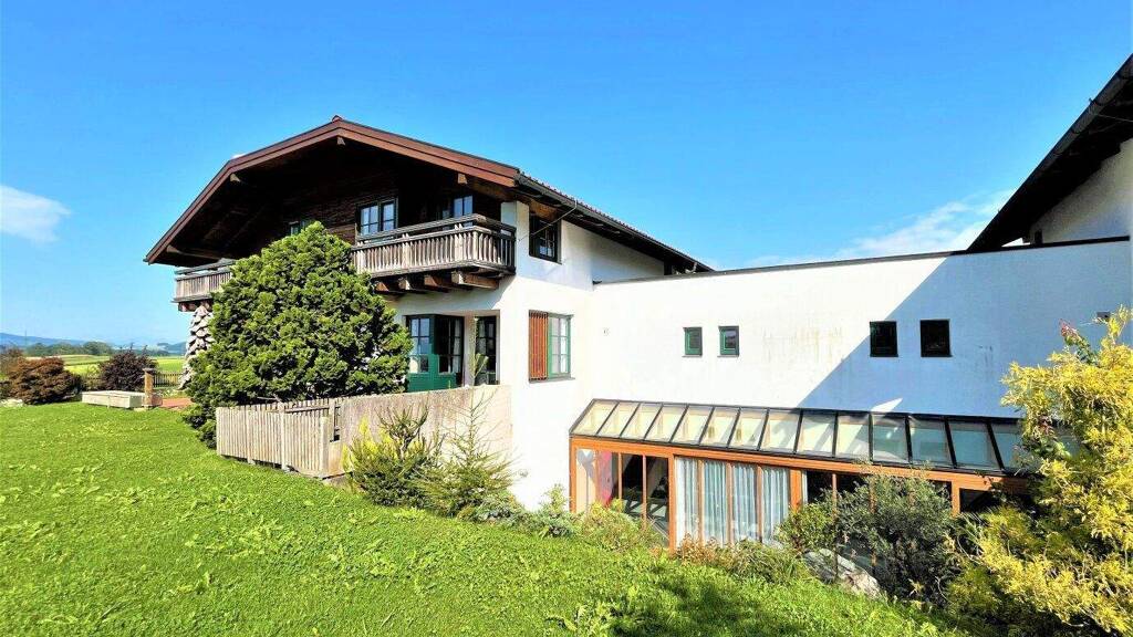 Es liegt erhöht in einer wunderschönen Umgebung mit einem einzigartigen Seeblick auf den Wallersee. Es ist umgeben von Wiesen und hat einen sehr gepflegten Garten, von dem aus auch in das Hallenbad gelangt werden kann.