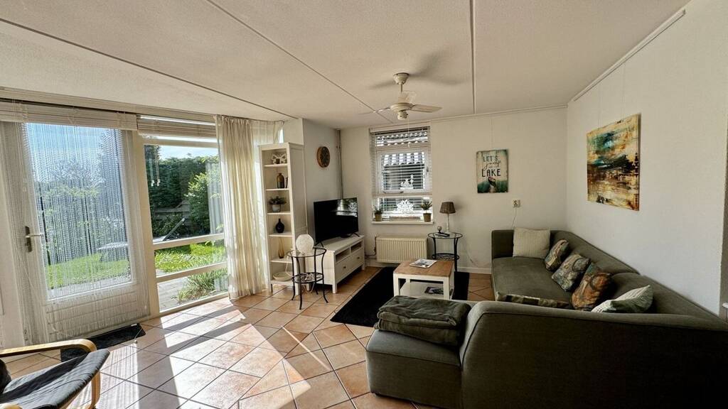 Das helle und geräumige Wohnzimmer ist mit einer komfortablen Sitzecke, einem Flachbild-TV und kostenlosem WLAN ausgestattet. Dank der großen Fenster und der Schiebetür genießen Sie viel Tageslicht und einen herrlichen Blick in den Garten. Das Wohnzimmer geht in den Essbereich über, wo Sie mit bis zu 6 Personen gemütlich speisen können. Von hier aus gelangen Sie direkt auf die sonnige Terrasse.