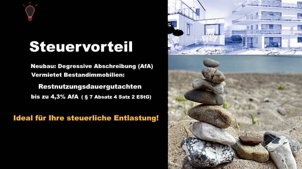 Hinweis: Bitte beachten Sie, dass das Angebot unverbindlich ist und Irrtümer sowie Zwischenverkäufe vorbehalten sind. Diese Beispielrechnung ist unverbindlich und ersetzt keine individuelle Steuer- oder Finanzierungsberatung. Steuerliche Effekte hängen von Ihren persönlichen Verhältnissen ab und bedürfen einer Fachberatung. Die Anerkennung einer verkürzten Restnutzungsdauer obliegt allein dem Finanzamt und erfordert i. d. R. ein Fachgutachten. Haftung für Richtigkeit und Aktualität ausgeschlossen, soweit nicht vorsätzlich oder grob fahrlässig.