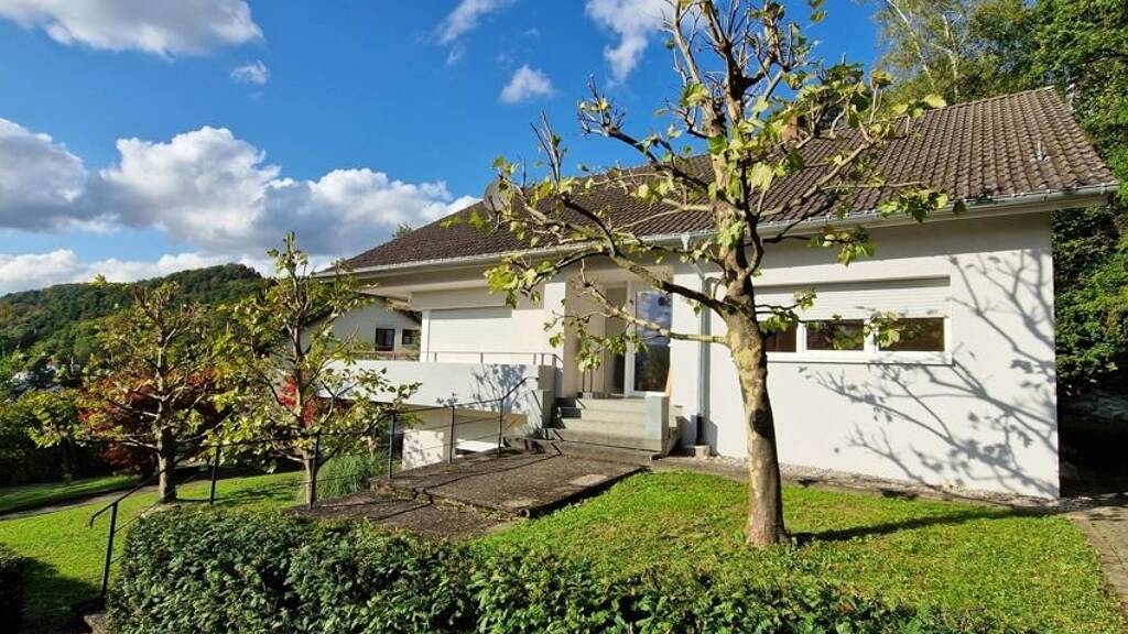 Das Wohnhaus wurde 1970 in massiver Bauweise in leichter Hanglage errichtet. Vor ca. 15 Jahren fand auch schon eine erste energetische Sanierung statt. So wurde das gesamte Gebäude mit einem Vollwärmeschutz versehen. Die schon vorhandene Wohnfläche und das weitere Flächenpotential sind riesig. Aktuell beträgt die Wohnfläche im Erdgeschoss ca. 93 m² und im Obergeschoss ca. 132 m². Das Dachgeschoss ist nicht ausgebaut, wurde allerdings für den Ausbau haustechnisch vorbereitet. Bei einem kompletten Ausbau wäre hier eine zusätzliche DIN-Wohnfläche mit ca. 94 m² möglich. Damit hätte das Gebäude eine Gesamtwohnfläche von ca. 320 m². Das Wohngebäude ist Südwest ausgerichtet. Durch die leichte Hanglage liegt die Einliegerwohnung im EG auf Gartenniveau mit den Kellerräumen und der Heizung im Rücken. Die darüber liegende Hauptwohnung befindet sich talseits (!) auf Obergeschossebene.