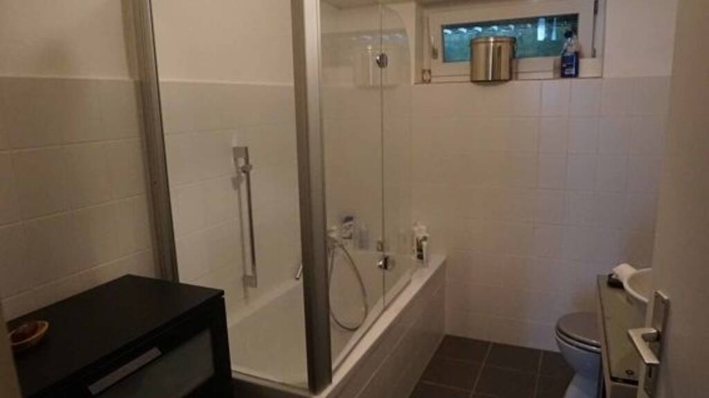 Im Gartengeschoss (Einliegerwohnung) sind die großen Zimmer ausschließlich mit Holzparkett belegt. Das Badezimmer hier wurde vor wenigen Jahren teilsaniert und modern mit dunklen Bodenfliesen und hellen Wandfliesen versehen. Auch in dieser Wohnung ist die Ausstattung der Einbauküche hinsichtlich des Mobiliars und technischen Hausgeräte nicht vollständig.