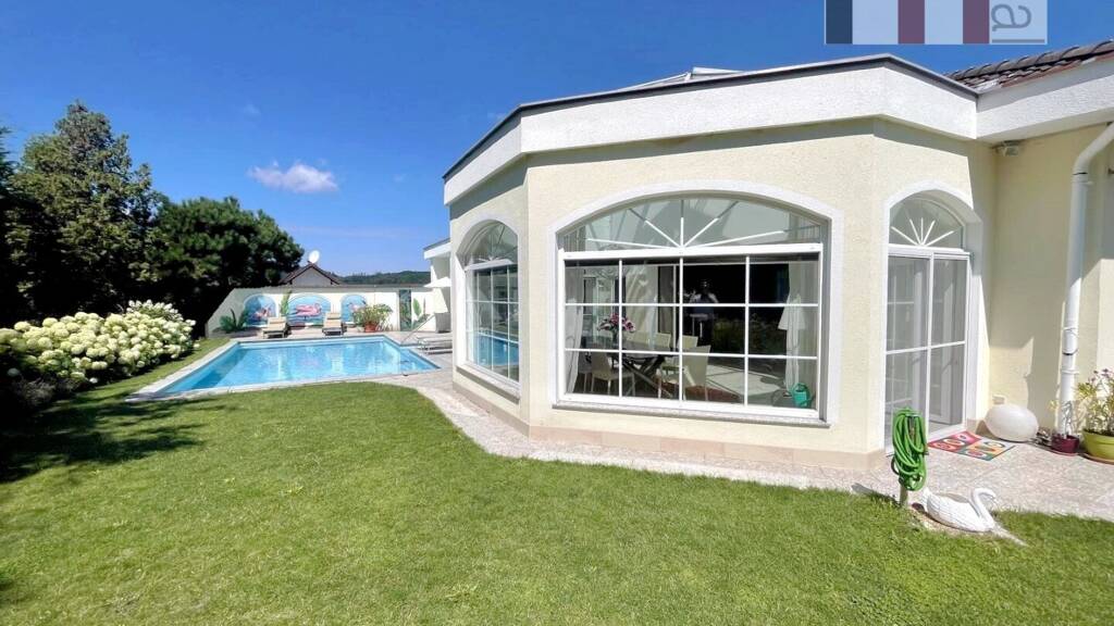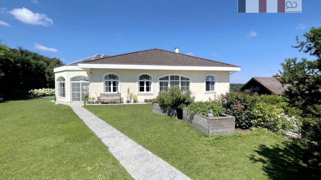 Die Liegenschaft befindet sich im eleganten Gablitzer Ortsteil Hochbuch in bester Lage mit Fernsicht und einer Ausrichtung nach Süden/Westen. Das 1464m² große, nahezu ebene Grundstück bietet jeden erdenklichen Komfort mit solarbeheiztem Pool, Weinkeller und einer großen überdachten Terrasse für Privatnutzung oder für angenehmen Stunden mit Ihren Gästen. Der Garten ist sehr gepflegt, schön bepflanzt und bietet auch im Sommer das eine oder andere schattige Plätzchen. Die exklusive Villa wurde im Jahr 1986 in idealer Position am Grundstück neu errichtet und immer wieder hochwertig modernisiert und energieeffizient optimiert. Der Grundriss ist sehr repräsentativ und nahezu perfekt geplant, die Großzügigkeit des Anwesens ist beeindruckend und sucht ihresgleichen. Die gesamte Wohnnutzfläche beträgt mehr als ca. 385m², die reine Wohnfläche ca. 245m². Geboten werden u.a. 5 gut dimensionierte Zimmer, 1 Küche, 2 Bäder, 2 Toiletten plus Nebenräume und eine südseitige Terrasse mit mehr als 40m².